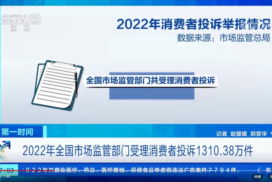 2022年全國市場監(jiān)管部門受理消費(fèi)者投訴1310.38萬件