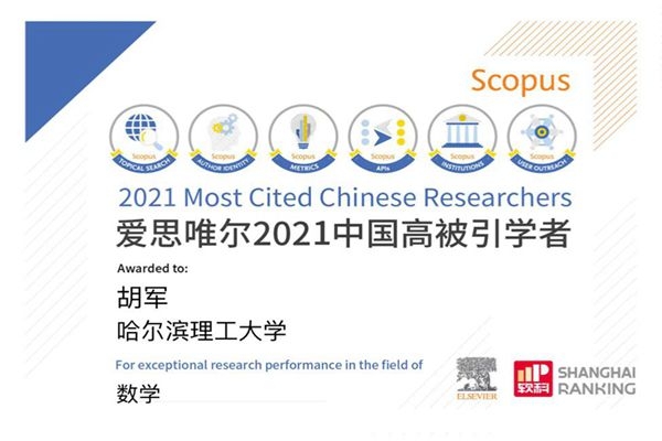哈理工大學(xué)胡軍教授蟬聯(lián)“中國(guó)高被引學(xué)者”榜單