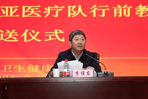 黑龍江省衛(wèi)生健康委黨組成員、副主任李維東作動(dòng)員講話并為醫(yī)療隊(duì)授旗。他要求全體隊(duì)員深入貫徹新時(shí)代黨的建設(shè)總體工作要求,把“不忘初心、牢記使命”作為持續(xù)加強(qiáng)黨的建設(shè)的永恒課題和黨員干部的終身課題。務(wù)必高度重視疫情防控,做到人物并防、多病同防,疫情防控必須慎終如始,要傳遞好中國(guó)抗疫經(jīng)驗(yàn),落實(shí)好對(duì)口醫(yī)院合作機(jī)制,推進(jìn)援助項(xiàng)目創(chuàng)新。并以身邊的抗疫英雄為榜樣,秉承援外醫(yī)療優(yōu)良傳統(tǒng)、弘揚(yáng)偉大抗疫精神。