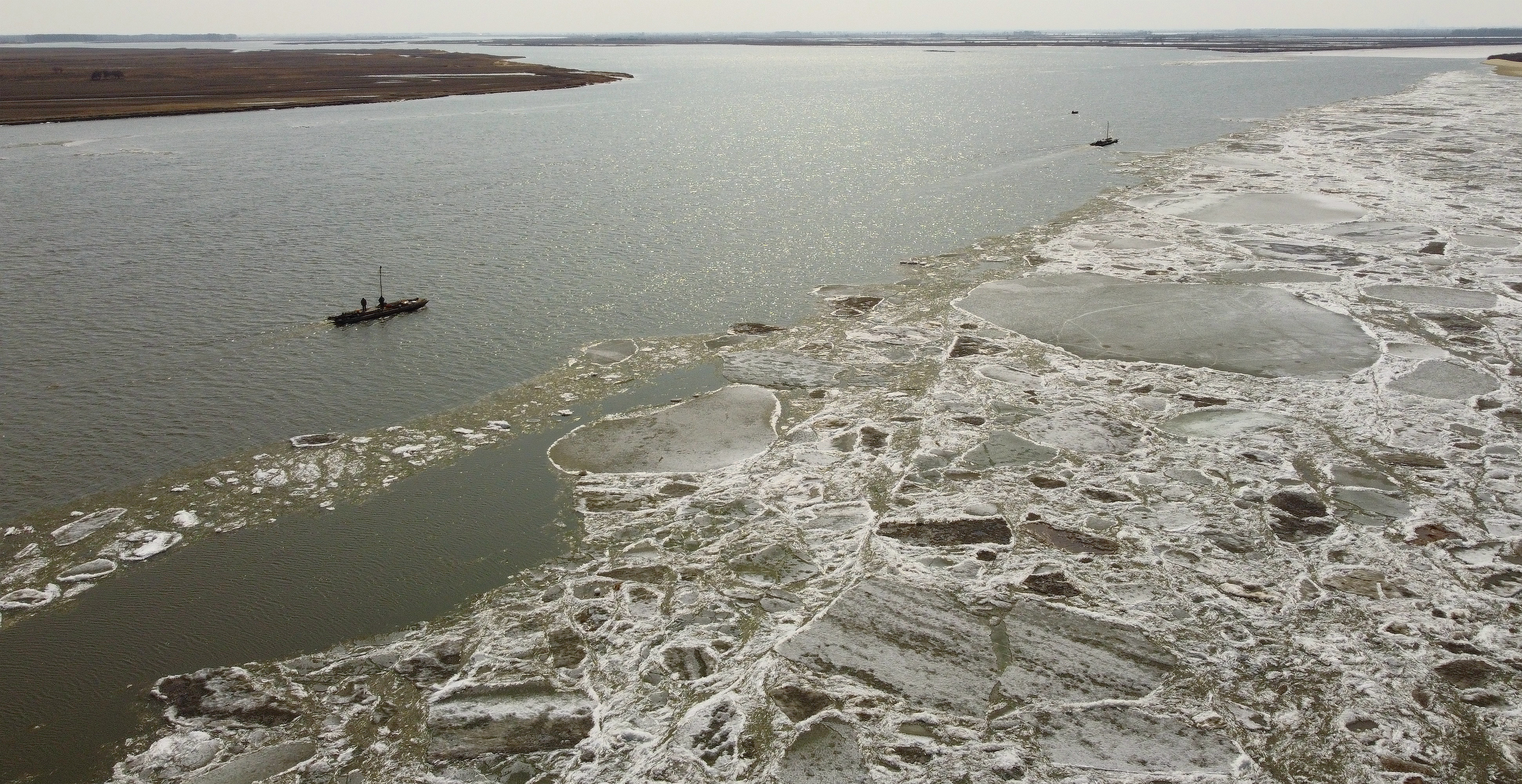 3月31日,松花江肇源縣三岔河江段,開始跑冰排。一塊塊大大小小的冰排順流而下,噼啪之聲不絕于耳,冰排不時(shí)相互撞擊,有些大塊冰排被擠到岸上,場面壯觀。三岔河,也叫三江口,是松花江在我省的源頭,位于肇源縣茂興鎮(zhèn)南10公里處。南來的第二松花江與北來的嫩江在此匯流,滔滔江水向東流去,江面寬闊,景色壯觀。