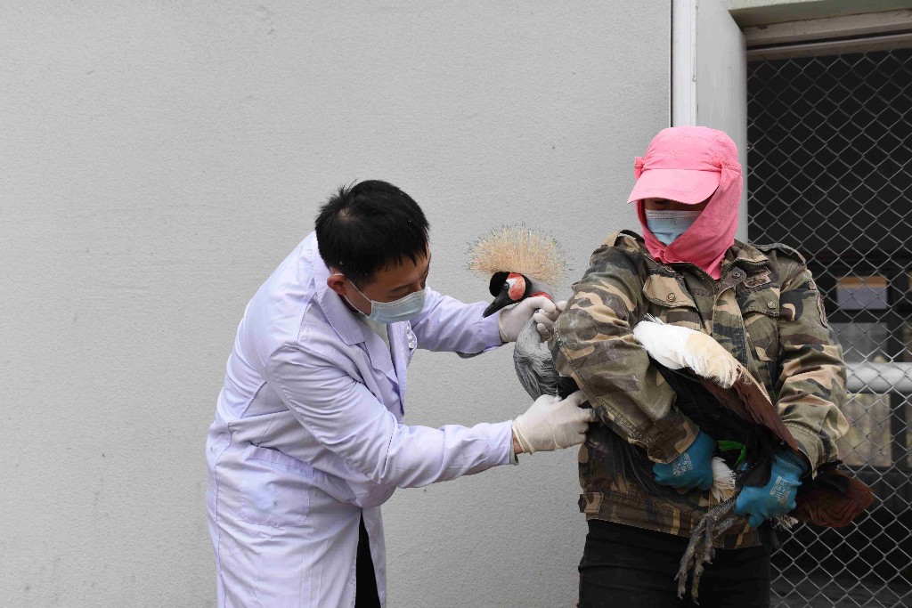 動(dòng)物醫(yī)生為園內(nèi)鳥類進(jìn)行體檢