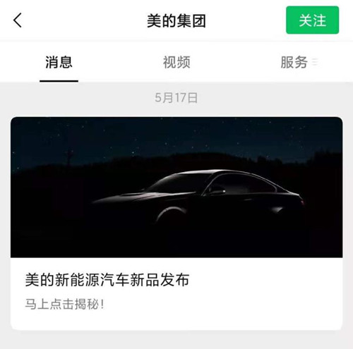 5月17日,美的集團(tuán)在其官方公眾號(hào)發(fā)文,預(yù)告將發(fā)布新能源車相關(guān)新品,并配有一張若隱若現(xiàn)的汽車宣傳海報(bào)。此舉一下激起市場(chǎng)猜測(cè):難道美的也要造車了?