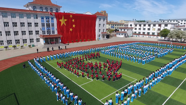 童心永向黨、歡歌慶六一,呼瑪縣第一小學(xué)的操場(chǎng)上,由全校600余名師生共同組成黨徽、100的造型圖案,在四層樓高的巨幅國(guó)旗映襯下,蔚為壯觀,一面面小紅旗在學(xué)生們手中揮舞,師生們懷著崇敬的心情,共同演唱《沒有共產(chǎn)黨就沒有新中國(guó)》。氣勢(shì)磅礴的開場(chǎng)節(jié)目,表達(dá)了呼瑪縣廣大師生學(xué)黨史、頌黨恩、跟黨走,隆重慶祝建黨100周年的激動(dòng)心情。