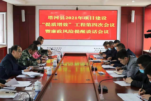 黑龍江經濟網訊(王超 石佰龍 記者馬朝林)5月31日,塔河縣2021年項目建設“提質增效”工程第四次會議暨廉政風險提醒談話會議在縣委四樓會議室召開,縣委書記林建軍、縣長宋波出席會議并講話,縣委常委、副縣長張躍科,副縣長劉淑艷、鄂旭杰、劉煜及項目、財經相關單位負責人參加會議。