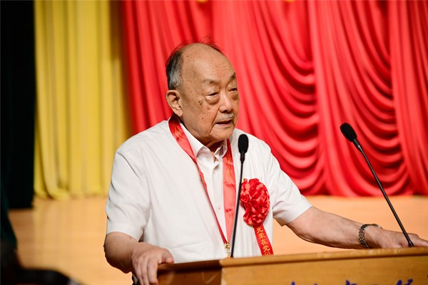 大會為“光榮在黨50年”的老黨員代表頒發(fā)紀念章,楊士莪院士作為黨齡56年的老黨員,發(fā)表了獲獎感言,他說,“我們這批在黨的關(guān)懷和培養(yǎng)教育下成長起來的一代,在黨的百年生日的時候,說實話心里千言萬語不知從何說起,要不然我就唱兩句現(xiàn)在電視上經(jīng)常聽到的歌曲?!睏钤菏可钋槌憽冻礁杞o黨聽》,他說:“我的聲音雖然不好聽,但是這首歌能夠表達我的心意。唱支山歌給黨聽,我把黨來比母親……”。楊士莪院士的歌聲讓在場師生非常意外,這首沒有經(jīng)過彩排的歌曲,卻因真情實感走進了師生們的心里,在他的帶動下,在場師生也情不自禁地鼓掌打拍跟唱起《唱支山歌給黨聽》,“母親只生了我的身,黨的光輝照我心?!?/span>
