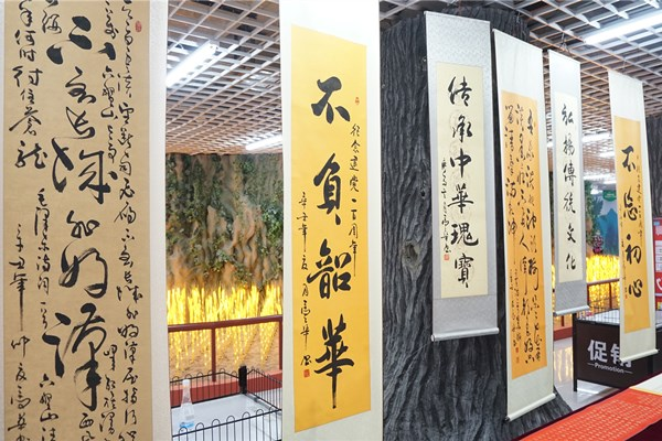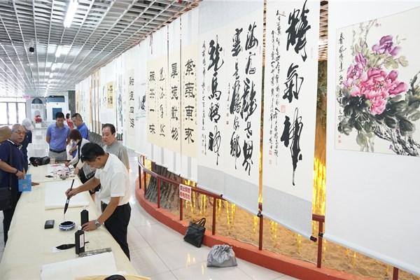 挽袖、研墨、調(diào)色、揮毫,書(shū)畫(huà)家們進(jìn)行現(xiàn)場(chǎng)書(shū)畫(huà)創(chuàng)作并交流創(chuàng)作心得。以書(shū)言志、以畫(huà)寄情,一幅幅極富感染力的書(shū)法、繪畫(huà)作品,抒發(fā)了對(duì)黨的敬愛(ài)之情和對(duì)祖國(guó)的美好祝愿?;顒?dòng)現(xiàn)場(chǎng)共展出書(shū)畫(huà)作品百余件。