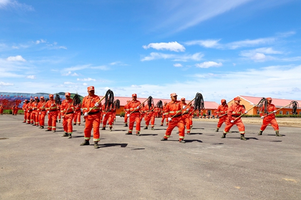 圖為阿木爾林業(yè)局“森防鐵軍”訓(xùn)練防火二號(hào)工具分解動(dòng)作