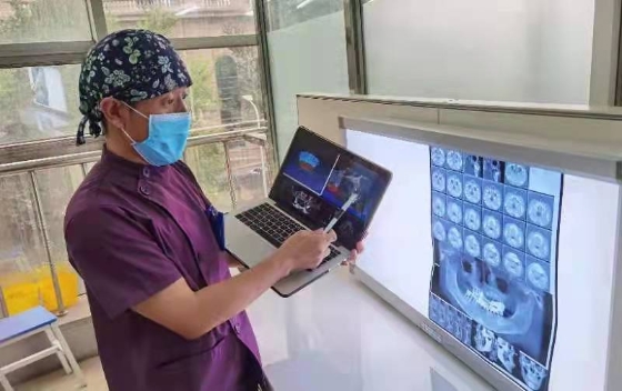 依托于“口腔北斗系統(tǒng)”新技術(shù),劉鑫教授團(tuán)隊(duì)在數(shù)字化口腔種植領(lǐng)域精耕細(xì)作,迄今已圓滿(mǎn)完成了上百例數(shù)字化種植牙手術(shù)。與傳統(tǒng)“自由手”口腔種植技術(shù)相比,數(shù)字化口腔種植手術(shù)更加安全、精準(zhǔn)、微創(chuàng)、高效、舒適。同時(shí),個(gè)性化的手術(shù)設(shè)計(jì)方案借助數(shù)字化的直觀、立體形式呈現(xiàn)在患者面前,便于醫(yī)患間直接面對(duì)面交流,既提升了種植手術(shù)的精確度和成功率,又節(jié)約了手術(shù)時(shí)間,減少了手術(shù)創(chuàng)傷,降低了術(shù)后并發(fā)癥。
