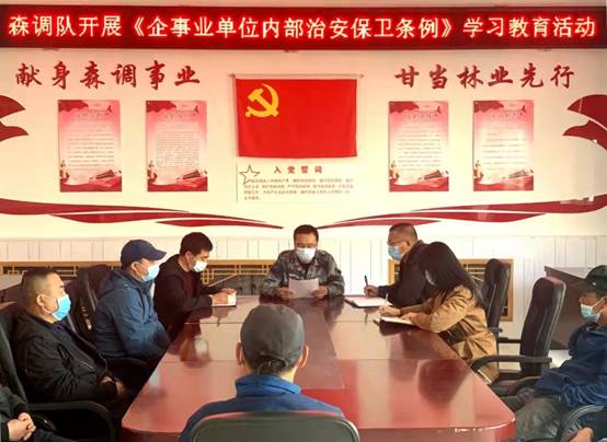 活動中,森林調(diào)查設(shè)計大隊首先成立了安全檢查工作組,明確檢查范圍和內(nèi)容,并由主管安全保衛(wèi)負責(zé)人領(lǐng)學(xué)了《企事業(yè)單位內(nèi)部治安保衛(wèi)條例》,要求全隊干部職工進一步提高政治站位,高度重視安全工作,嚴格落實安全責(zé)任制,認真執(zhí)行值班值守制度,及時做好安全信息登記和對上報告工作,繼續(xù)加強對進出單位人員的疫情監(jiān)控,著力保障企業(yè)內(nèi)部穩(wěn)定。