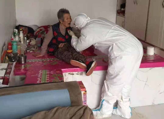 巴彥縣核酸采集現(xiàn)場(chǎng)還活躍著省醫(yī)院健康管理中心疾病康復(fù)部工作人員的身影,護(hù)士長李曉莉率先垂范,發(fā)揮黨員先鋒模范作用,帶隊(duì)“出征”;隊(duì)員徐賢紅克服低血鉀、全身無力等困難,積極參戰(zhàn);隊(duì)員林虹則空腹血糖達(dá)10mmol/L,帶著胰島素請(qǐng)求“參戰(zhàn)”。三人早晨7點(diǎn)開始核酸采集工作,深入到各個(gè)鄉(xiāng)鎮(zhèn)村屯,更將核酸采集工作延伸到老鄉(xiāng)家中,為臥床及行動(dòng)不便的人進(jìn)行核酸采集工作,中飯和晚飯都是快速的吃一口盒飯或者泡面就地解決,然后又迅速投入到工作中。據(jù)了解,疾病康復(fù)部人均年齡都在50歲左右,此次抗疫所有的同事都克服自身重重困難,為完成使命,勇往直前,盡顯龍醫(yī)人的本色。
