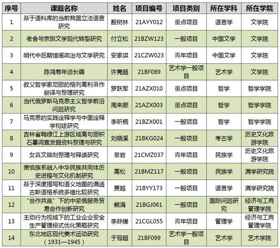 據(jù)了解,國家社會科學(xué)基金項目是經(jīng)國務(wù)院批準設(shè)立,由全國哲學(xué)社會科學(xué)工作辦公室負責(zé)管理,人文社科研究領(lǐng)域中層次最高、資助力度最大、權(quán)威性最強的國家級項目,受到學(xué)界高度關(guān)注。今年黑龍江大學(xué)立項的項目總體上有以下幾個特點:一是傳統(tǒng)優(yōu)勢學(xué)科立項數(shù)量穩(wěn)定增長。中國語言文學(xué)獲得4項,哲學(xué)獲得3項,與去年比較穩(wěn)中有升,保持了良好的科研發(fā)展態(tài)勢。二是特色學(xué)科亮點突出。考古學(xué)、民族學(xué)、國際問題研究、管理學(xué)等學(xué)科善于抓住熱點和難點問題,歷年均有斬獲;藝術(shù)學(xué)獲得2項一般項目,立項數(shù)居全省第一位,實現(xiàn)歷史性突破。三是高層次項目數(shù)量全省領(lǐng)先。全省共獲重點項目4項,黑大獲得其中3項,立項數(shù)占全省總量的75%。國家社科基金重點項目主要資助學(xué)術(shù)分量厚重、創(chuàng)新性強、對學(xué)科發(fā)展具有重要推動作用的研究成果。重點項目數(shù)量僅為每年立項總數(shù)的8%左右,是衡量科研單位科研能力和水平的重要標志,在各類評估、評比中具有較大權(quán)重。四是青年項目占比提高。從項目層次分布上來看,獲3項青年項目,占立項總數(shù)的21.4%,居十年來最高水平。