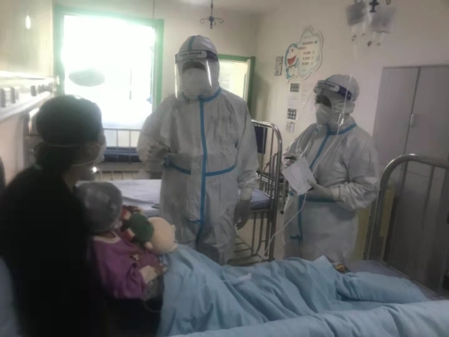 9月29日,科主任邸順祥和護(hù)士長(zhǎng)閆秀彬共同進(jìn)入醫(yī)學(xué)留觀病區(qū)進(jìn)行日常查房。查房進(jìn)行到中午發(fā)熱門診迎來(lái)了一位特殊患兒,這是一例確診病例的第一密切接觸者,家屬均被隔離,由于突發(fā)疾病由集中隔離點(diǎn)的醫(yī)護(hù)人員乘專門車輛護(hù)送至發(fā)熱門診。邸順祥主任坐鎮(zhèn)指揮,閆秀彬護(hù)士長(zhǎng)配合消毒,等待最終結(jié)果。當(dāng)患兒核酸檢測(cè)結(jié)果回報(bào)陰性,除外新冠病毒感染,經(jīng)由集中隔離點(diǎn)人員按規(guī)定接回時(shí),醫(yī)護(hù)人員們?cè)卺t(yī)學(xué)留觀區(qū)已工作了5小時(shí)。