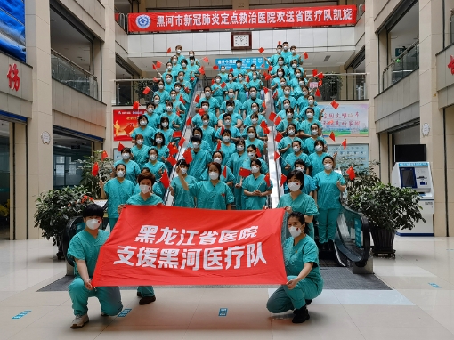 醫(yī)療隊(duì)抵達(dá)黑河后即迅速成立了臨時(shí)黨支部,由總指揮商曉英副院長(zhǎng)擔(dān)任支部書記,充分發(fā)揮基礎(chǔ)黨組織戰(zhàn)斗堡壘作用,堅(jiān)守初心、踐行使命,加強(qiáng)抗疫一線黨的建設(shè),團(tuán)結(jié)帶領(lǐng)了所有黨員及全體群眾,對(duì)黨忠誠(chéng)、勇于擔(dān)當(dāng)、頑強(qiáng)堅(jiān)守。期間,得到了省衛(wèi)健委、黑河市委市政府、黑河抗疫指揮部等各級(jí)領(lǐng)導(dǎo)的關(guān)懷、認(rèn)可和鼓勵(lì),也得到了國(guó)家、省級(jí)專家組的科學(xué)指導(dǎo)和一致好評(píng)。醫(yī)療隊(duì)精湛的救治水平、無(wú)微不至的服務(wù)關(guān)懷更是得到了每一位患者的點(diǎn)贊。