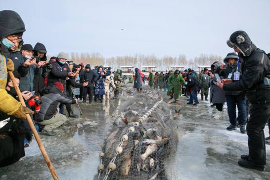 另外,杜爾伯特連環(huán)湖水產(chǎn)資源豐富,水產(chǎn)養(yǎng)殖業(yè)水域面積56萬(wàn)多畝,湖內(nèi)盛產(chǎn)40種淡水魚(yú)類(lèi),尤以鯉魚(yú)、草魚(yú)、鰱魚(yú)、胖頭魚(yú)、鯽魚(yú)、黑魚(yú)等為多,年捕魚(yú)千余噸,冬網(wǎng)捕魚(yú)更是傳統(tǒng)習(xí)俗。連環(huán)湖溫泉景區(qū)冬季每天上午免費(fèi)開(kāi)展民俗冬捕活動(dòng),購(gòu)魚(yú)享受8折優(yōu)惠,還可以參與抽獎(jiǎng)活動(dòng)。