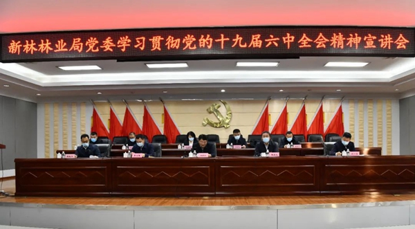 組織部署先行,推動全局貫徹“一盤棋”。新林林業(yè)局黨委第一時間召開部署會議,研究貫徹落實措施,召開理論學習中心組(擴大)會議,學習《中國共產(chǎn)黨第十九屆中央委員會第六次全體會議公報》精神,并集體收看黨的十九屆六中全會新聞發(fā)布會。印發(fā)《新林林業(yè)局黨的十九屆六中全會精神學習宣傳工作實施方案》《新林林業(yè)局學習貫徹黨的十九屆六中全會精神宣教工作方案》等文件,要求各單位科學組織,通過線上與線下、自學與集中學相結(jié)合等多種方式,開展學習研討,不斷提高政治站位;各基層單位積極行動,精心安排部署,結(jié)合單位實際,立足“學懂、弄通、做實”的要求,通過“讀書班”、“三會一課”、“主題黨日”、集中研討等形式,切實把學習成效轉(zhuǎn)化為工作動力,推動各項工作部署落地見效。截至目前,全局開展集中學習