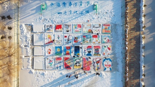 雪后的籃球場,變身為學(xué)生們的巨型畫板,大家在這里以“迎接建黨100周年”、“迎接北京2022冬奧會(huì)”為主題,在雪地上涂鴉,把雪后的校園裝扮得與眾不同。學(xué)生們發(fā)揮想象,用色彩描繪出更快、更高、更強(qiáng)的奧林匹克精神,以涂鴉展現(xiàn)著當(dāng)代中學(xué)生的青春風(fēng)采。
