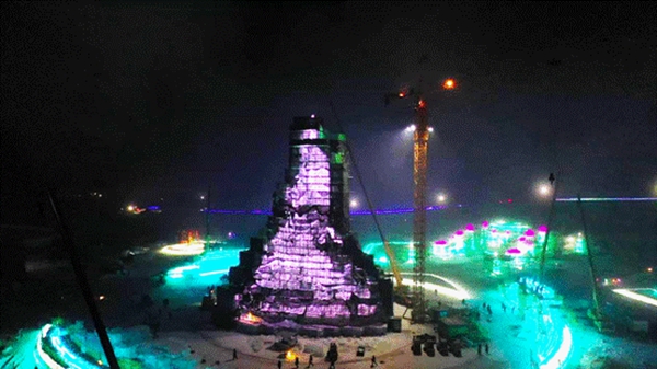 黑龍江經(jīng)濟(jì)網(wǎng)訊(記者魏巍 王艷秋)12月18日晚11時(shí),第二十三屆哈爾濱冰雪大世界園區(qū)主塔“圣火之巔”搭建上最后一塊冰。這標(biāo)志著主塔的封頂工作正式完成,“圣火之巔”已進(jìn)入最后的細(xì)節(jié)打磨和燈光調(diào)試階段。