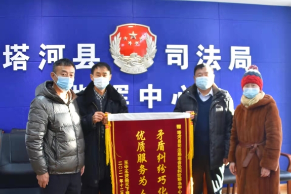 黑龍江經(jīng)濟網(wǎng)訊(吳慶勇 周楠)近日,塔河縣氣溫驟降,居民徐麗莉、田桂龍夫妻不顧寒冷,滿懷感恩的心將“矛盾糾紛巧化解,優(yōu)質(zhì)高效為人民”的錦旗送到塔河縣司法局,表達(dá)對塔河縣司法局非訴訟糾紛解決中心公正、高效為民解憂的感謝之情。