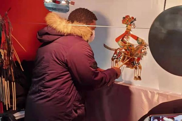 在望奎民間藝人表演的皮影戲現(xiàn)場,留學(xué)生們紛紛舉起手機拍照留念,并發(fā)出了陣陣贊嘆。“皮影是用驢皮制作上色的,大家猜猜它是男生還是女生?”對外漢語系教師張明明帶領(lǐng)留學(xué)生來到皮影戲的后臺,講解皮影的制作工藝和皮影劇的來歷。留學(xué)生們被皮影戲深深吸引,聽得津津有味,并親自操作體驗了一下。