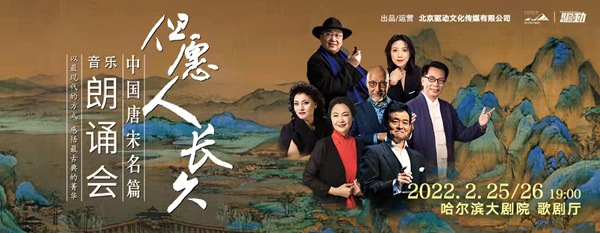 2月25、26日,“但愿人長久——中國唐宋名篇音樂朗誦會”將以全新陣容再度亮相冰城舞臺,由指揮家高嵩執(zhí)棒,黑龍江省歌舞劇院有限公司交響樂團、民族樂團、合唱團共同呈現(xiàn),朗誦表演藝術家濮存昕、喬榛、張晶、張宏聯(lián)袂著名歌唱家楊小勇、么紅,以詩樂相伴的方式再現(xiàn)盛唐兩宋的詩詞歌賦。