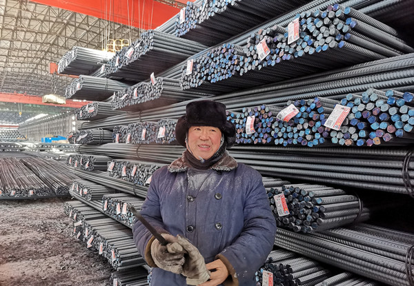 在鋼材成口庫,一位身穿工裝大棉襖、頭戴棉帽,捂得嚴嚴實實,臉色微紅的,帽沿掛滿了霜的工人十分引人注目。他叫朱世軍,是軋鋼廠發(fā)運作業(yè)區(qū)丙班的一名普通司索操作員,初一正是白班,主要負責鋼材裝運掛鉤和為火車車皮用鐵線鎖車門工作,一但發(fā)運繁忙時,無論白班還是夜班都得在室外作業(yè)裝車,企業(yè)鋼材就靠他們配合裝上火車發(fā)往市場的?!敖裉斓冒l(fā)運鋼材110車左右,每天上班,在成品庫得上上下下,得走好幾里地,今天就挺冷啊,最低零下26度,冷風吹的嘴都木了,既使戴著棉手套,手也都凍僵了,但是,每天一想到通過我的努力,把建龍西鋼鋼材發(fā)往全國各地,為建龍西鋼美好企業(yè)建設做貢獻,我雖然冷點但心里熱乎乎的,真心感到驕傲和自豪。