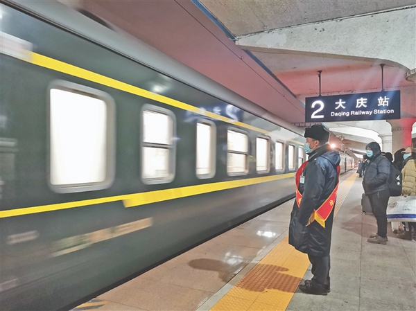 由于節(jié)后返程客流劇增,大慶地區(qū)去往海拉爾的4趟旅客列車無法滿足企業(yè)返崗需要,為幫助企業(yè)解決油田職工返崗復工困難,哈爾濱局集團公司全力協(xié)助大慶油田有限責任公司辦理職工出行事宜,為企業(yè)量身定制了油田職工返崗復工專列開行方案。在春運期間運力緊張的情況下,專門調集10輛空調車體,全面進行設備檢修維護和車輛消毒作業(yè),滿足石油工人出行需求。負責運輸組織工作的大慶站為油田職工提供專項聯(lián)絡、專區(qū)候車、專人引導服務,及時辦理團體購票,增開進站通道,提前做好候車區(qū)域通風、消毒和保潔工作,配合地方政府嚴格落實進站掃碼、測溫等防疫措施,在驗票進站、安檢、候車、乘車等環(huán)節(jié)設置人員進行引導。并利用小喇叭、電子顯示屏、車站廣播等載體,循環(huán)播放疫情防控措施、登乘列車注意事項,引導務工人員分散候車就座。鐵路部門精心抽調服務經(jīng)驗豐富的哈爾濱客運段北京車隊列車工作人員負責乘務工作,提前做好列車通風消毒和防疫保潔工作,為乘客準備了一次性醫(yī)用口罩和消毒洗手液,全力營造健康安全的出行環(huán)境。
