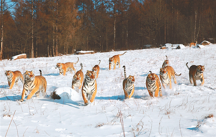 在這片冰天雪地之中,還有非??蓯鄣膭游?。在東北虎林園和橫道東北虎林園中,雪地“跑酷”的東北虎盡展百獸之王的颯爽雄姿;齊齊哈爾扎龍國家級自然保護(hù)區(qū)的丹頂鶴,雪地起舞別有風(fēng)情;亞布力熊貓館中翻滾嬉鬧的佑佑和思嘉萌趣可愛;哈爾濱極地公園的網(wǎng)紅“淘學(xué)企鵝”,在雪地散步憨態(tài)可掬;野生“狍子君”在大興安嶺的林中穿梭,聽到聲音還會好奇的回頭……這些龍江冬日里的小可愛們,活力十足,讓人心生喜愛。
