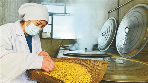 漫長(zhǎng)的歲月,手藝人不斷積累經(jīng)驗(yàn),對(duì)豆子在發(fā)酵過(guò)程中不斷變化的溫度、色澤、香氣等有了直覺(jué)判斷,才讓胡曉華的手工大醬保存了讓人認(rèn)可的老味道。經(jīng)常有人慕名找她咨詢(xún),“我家大醬為啥不發(fā)酵?”“大醬酸了咋辦?”……她都一一耐心地解答。
