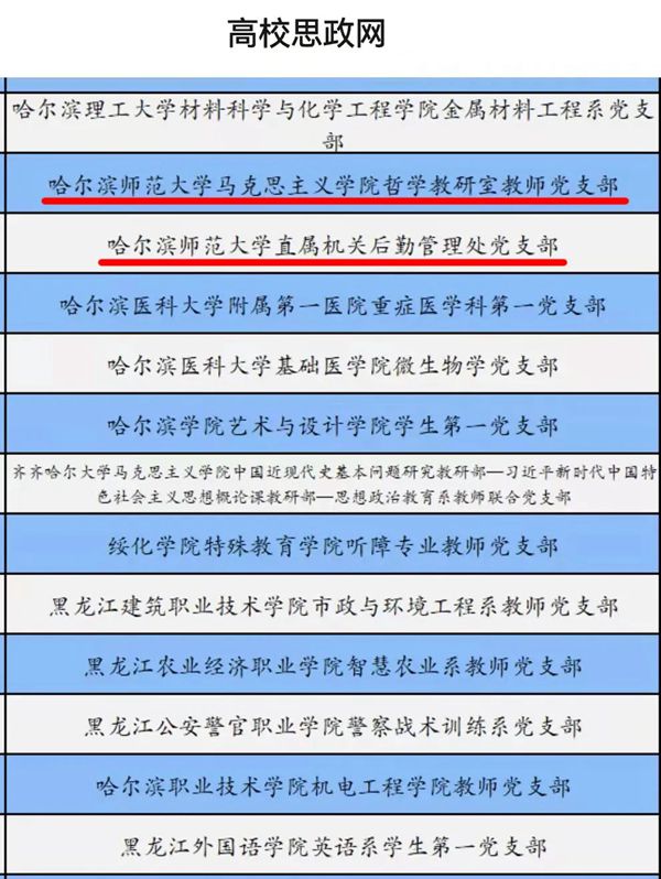黑龍江經(jīng)濟(jì)網(wǎng)訊(黑龍江日報全媒體見習(xí)記者董廣碩 商祺)根據(jù)《教育部辦公廳關(guān)于開展第三批新時代高校黨建示范創(chuàng)建和質(zhì)量創(chuàng)優(yōu)工作的通知》要求,經(jīng)哈爾濱師范大學(xué)校黨委組織申報、省級黨委教育工作部門推薦、資格審查、專家評審、教育部黨的建設(shè)和全面從嚴(yán)治黨工作領(lǐng)導(dǎo)小組成員單位集中審議、結(jié)果公示,遴選產(chǎn)生了全國黨建工作示范高校、標(biāo)桿院系和樣板支部。哈爾濱師范大學(xué)馬克思主義學(xué)院哲學(xué)教研室教師黨支部和直屬機(jī)關(guān)后勤管理處黨支部獲批“全國黨建工作樣板支部”。到目前為止,哈爾濱師范大學(xué)共獲批1個全國黨建工作標(biāo)桿院系,4個全國黨建工作樣板支部,1個全國研究生樣板黨支部,獲批數(shù)量居于省屬高校首位。
