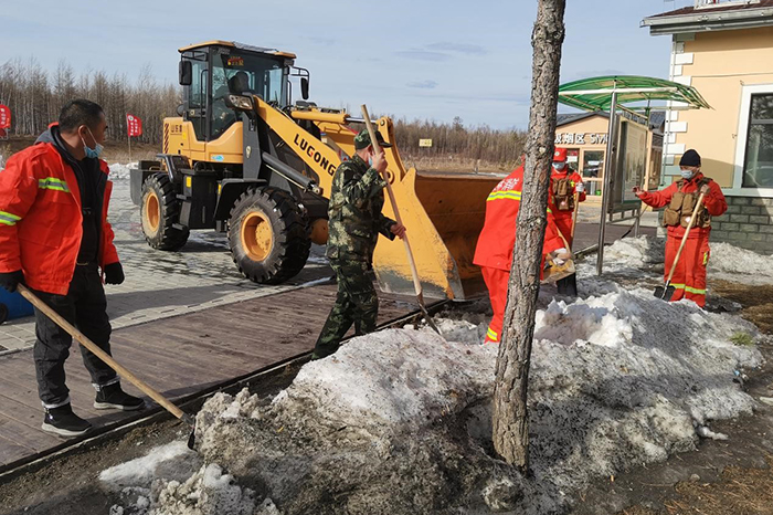 塔源林場組織人員清理北山綜合服務積雪、雜物(孫秀艷 攝)