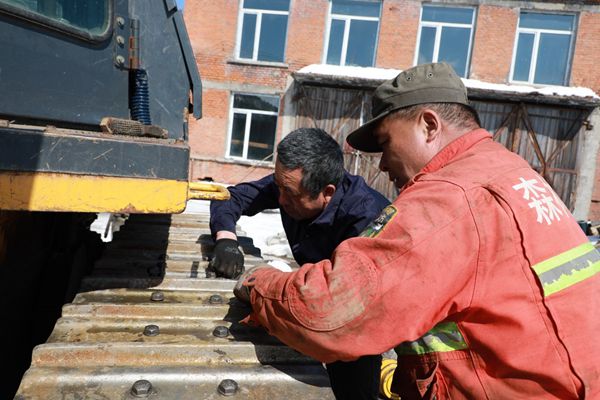 阿木爾林業(yè)局多種經(jīng)營公司職工在更換推土機的鏈軌板(王力 攝)