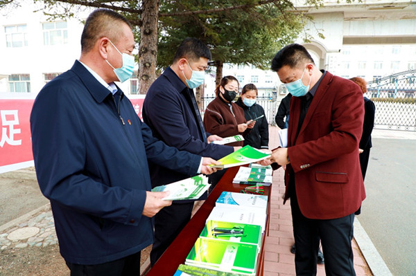 阿木爾林業(yè)局在人員密集場(chǎng)所設(shè)立宣傳站,向職工群眾宣傳森林認(rèn)證相關(guān)知識(shí)(王力 攝)