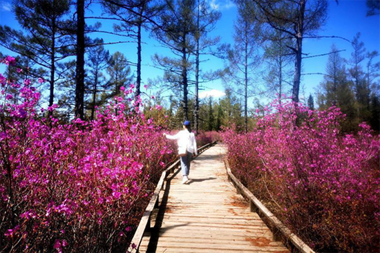 據(jù)了解,每年四月末、五月初杜鵑花都會(huì)如期綻放,因?yàn)榻衲隁鉁剌^低興安杜鵑盛開的周期較往年延后,5月中旬達(dá)到盛花期,花期可持續(xù)一周左右。