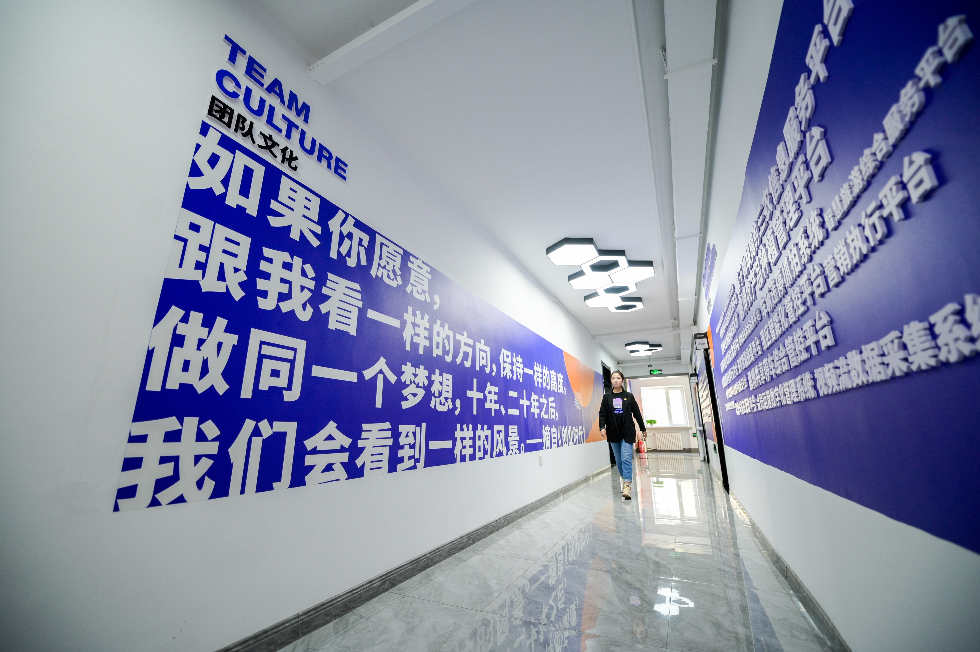 “如果你愿意,跟我看一樣的方向,保持一樣的高度,做同一個(gè)夢(mèng)想,十年、二十年之后,我們會(huì)看到一樣的風(fēng)景?!薄白尮ぷ骱蜕罡悄堋薄哌M(jìn)鵬博集團(tuán),隨處可見(jiàn)勵(lì)志標(biāo)語(yǔ),年輕的員工們正滿懷熱情地在電腦前敲擊著鍵盤(pán)。