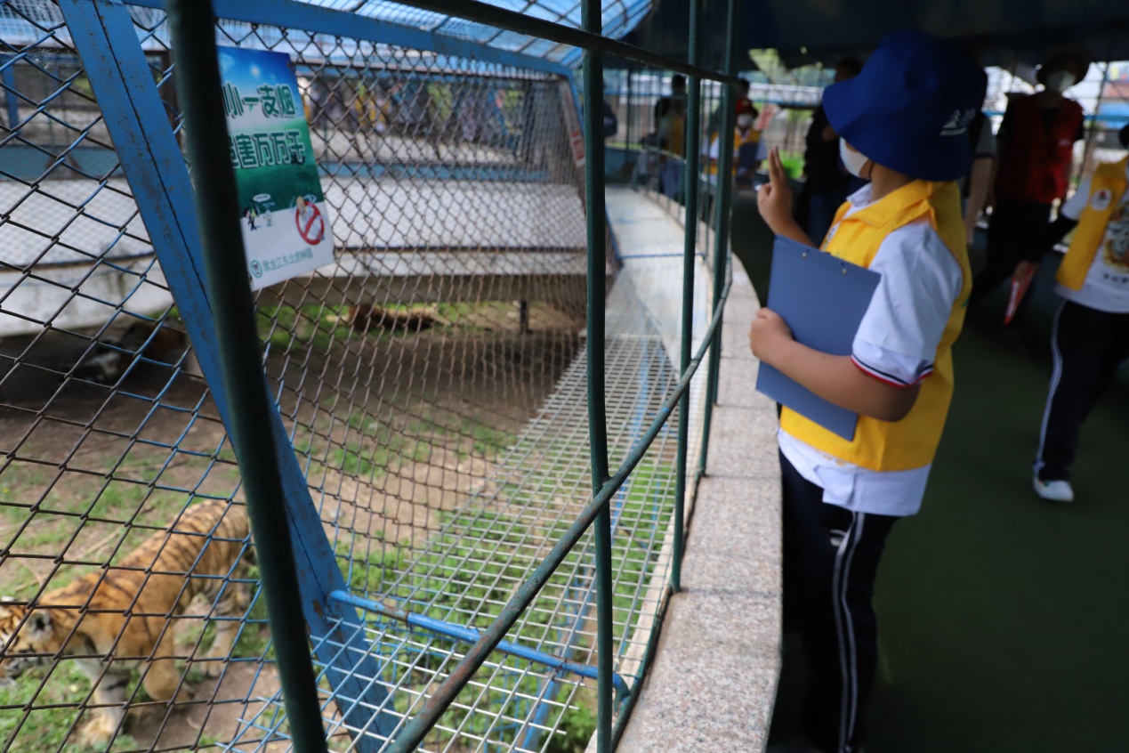 在東北虎林園工作人員的帶領(lǐng)下,小朋友們穿著統(tǒng)一的黃馬甲,手持研學(xué)游活動(dòng)記錄單,充滿期待地走進(jìn)東北虎林園,近距離觀察動(dòng)物們的外貌特征、動(dòng)作特點(diǎn),細(xì)致聆聽(tīng)工作人員的講解,認(rèn)真記錄自己所看到的每一個(gè)細(xì)節(jié)、聽(tīng)到的每一個(gè)知識(shí),還有愛(ài)畫(huà)畫(huà)的小朋友畫(huà)下了自己親眼所見(jiàn)的老虎憨態(tài)可掬的樣子。