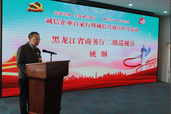 省商務(wù)廳二級(jí)巡視員姚綱在致辭中指出,此次黑龍江省“誠(chéng)信企業(yè)百家行”暨“誠(chéng)信興商宣傳月”活動(dòng),是加強(qiáng)誠(chéng)信宣傳,提升全社會(huì)誠(chéng)實(shí)守信意識(shí),優(yōu)化消費(fèi)和營(yíng)商環(huán)境的一次重要舉措。省商務(wù)廳將會(huì)同相關(guān)單位統(tǒng)籌協(xié)調(diào)、密切配合,做到政府帶頭講誠(chéng)信,商貿(mào)流通企業(yè)為“誠(chéng)信興商”活動(dòng)主體,通過(guò)宣傳商務(wù)誠(chéng)信文化和信用管理知識(shí),引導(dǎo)市場(chǎng)主體樹(shù)立誠(chéng)信興商經(jīng)營(yíng)理念,提高信用管理能力,營(yíng)造崇信守法的營(yíng)商環(huán)境。培育消費(fèi)者信用消費(fèi)習(xí)慣,提升風(fēng)險(xiǎn)防范意識(shí),依法維護(hù)自身合法權(quán)益,引導(dǎo)和帶動(dòng)整個(gè)商貿(mào)行業(yè)的誠(chéng)信建設(shè)。