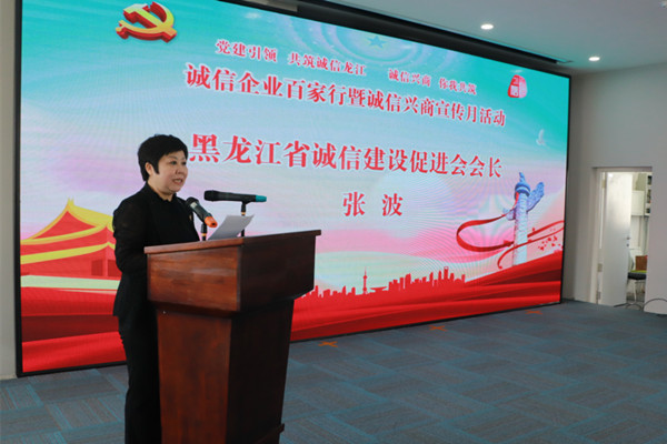 活動(dòng)現(xiàn)場(chǎng),省直機(jī)關(guān)工委行業(yè)協(xié)會(huì)商會(huì)黨建工作部張軍為本次活動(dòng)致辭。他表示,此次活動(dòng)以“黨建引領(lǐng)、共筑誠(chéng)信龍江”為主題,是推動(dòng)黨建工作與行業(yè)協(xié)會(huì)商會(huì)業(yè)務(wù)工作融合發(fā)展的具體舉措,希望省誠(chéng)促會(huì)始終高舉黨的旗幟,堅(jiān)定正確的政治方向,發(fā)揮誠(chéng)信興商聯(lián)盟平臺(tái)作用,廣泛聯(lián)合龍江誠(chéng)信社會(huì)組織,建設(shè)龍江誠(chéng)信高地,打造誠(chéng)信示范群體,形成誠(chéng)信集聚效應(yīng),共興誠(chéng)信之風(fēng)、樹(shù)立誠(chéng)信典范、弘揚(yáng)誠(chéng)信力量,樹(shù)立龍江社會(huì)、龍江企業(yè)誠(chéng)信文化典型,打造我省“誠(chéng)信龍江”閃亮名片。