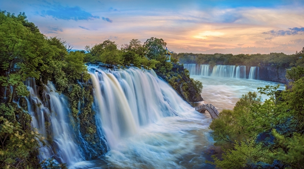 兩條毫無污染而清澈的高山河流——金溪谷和銀溪谷川流不息,多處跌水形成了罕見且壯觀的九疊泉瀑布群,其秀麗的自然風(fēng)光如人間仙境一般,素有“北國小九寨”之美稱。