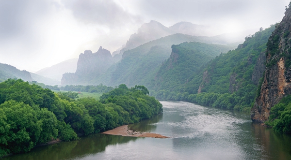 東寧洞庭風(fēng)景區(qū)處于綏芬河的中游,是東寧知名的旅游景點之,洞庭湖周圍山峰崖懸壁陡,陡岸垂直落差100米,有“江南峽谷”之韻感。在群山懷抱的翡翠世界里,彎彎曲曲的綏芬河穿流在風(fēng)景區(qū)之中,河水靜謐剔透顯得格外安靜。