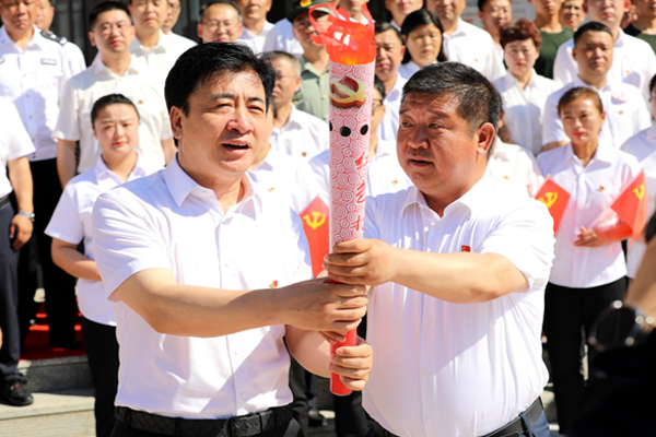 塔河林業(yè)局黨委書記許曉光,塔河縣委副書記、縣長宋波共同啟動“黨建接力·紅色打卡”黨建共建火炬接力活動;塔河縣委常委、組織部部長婁喜春將火炬?zhèn)鬟f給火炬接力第一棒代表隊隊長、黨委委員、組織部部長寧洪力手中。
