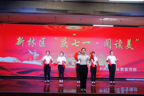 最后,由新林區(qū)處級(jí)領(lǐng)導(dǎo)干部帶來的詩朗誦《黨旗飄飄》,以激蕩澎湃的深情頌讀,展示了從空間到時(shí)間、從歷史到當(dāng)前的壯闊畫面,抒發(fā)了心中對(duì)黨、對(duì)祖國(guó)的無限熱戀,表達(dá)了永遠(yuǎn)追隨這面光榮旗幟的錚錚誓言和堅(jiān)定決心。聽得在場(chǎng)人員心潮澎湃,感慨萬千。新林區(qū)將繼續(xù)拓展“興安萬里·閱讀有你”全民閱讀活動(dòng),讓越來越多新林人愛上閱讀,為新林區(qū)轉(zhuǎn)型振興發(fā)展增添強(qiáng)大精神動(dòng)力,以新林努力、新林有為、新林貢獻(xiàn)的優(yōu)異成績(jī)迎接黨的二十大勝利召開。