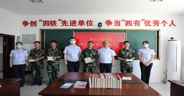 活動中,稅務(wù)干部為軍營官兵進(jìn)行了軍人相關(guān)稅收政策專題輔導(dǎo),為他們送上“退役軍人創(chuàng)業(yè)稅費(fèi)扣減”“隨軍家屬創(chuàng)業(yè)免征增值稅政策指南”“企業(yè)吸納退伍士兵就業(yè)稅費(fèi)扣減”“自主擇業(yè)的軍隊(duì)轉(zhuǎn)業(yè)干部免征個人所得稅”等政策大餐。專題輔導(dǎo)設(shè)置政策解讀、現(xiàn)場互動、釋疑解問等諸多環(huán)節(jié),從明晰優(yōu)惠政策條件、納稅申報(bào)方式等不同角度,用通俗易懂的語言和生動幽默的例子深入宣傳解讀相關(guān)稅收優(yōu)惠政策,打消官兵復(fù)退擇業(yè)的后顧之憂,幫助他們吃了一顆“定心丸”。專題輔導(dǎo)結(jié)束后,稅務(wù)干部向部隊(duì)官兵贈送30余本書籍,并送上現(xiàn)行個稅費(fèi)種簡介、退役軍人就業(yè)創(chuàng)業(yè)稅費(fèi)優(yōu)惠政策指引等宣傳冊,給綠色軍營送去藍(lán)色溫暖。