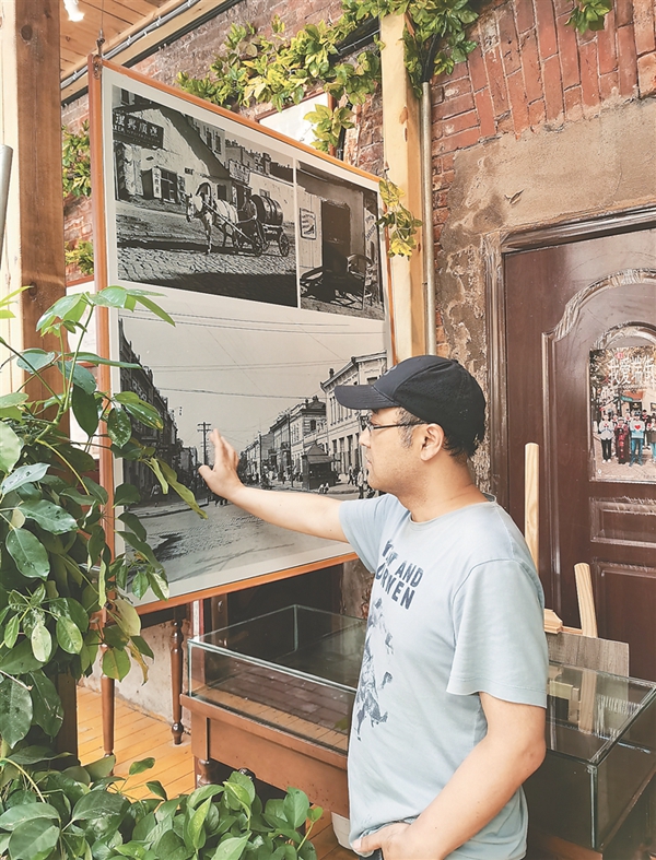 宋興文說(shuō),該樓一部分一直閑置,他投資租下該樓一部分進(jìn)行修復(fù),利用十余年來(lái)收藏的端街老建筑圖紙、文件、俄僑老家居用品、老照片等,辦起了這家私人公益博物館,2021年8月開(kāi)始免費(fèi)向游人開(kāi)放,介紹端街歷史文化,實(shí)現(xiàn)“哈爾濱老建筑活化”,目前每天能接待游客百余人。