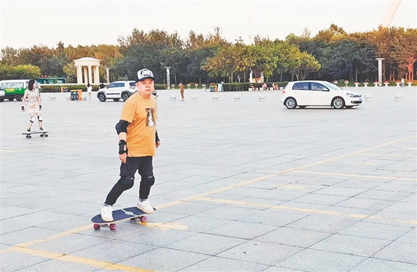 桀驁看起來40歲上下,但其實已經(jīng)47歲??醇軇菟銐驄故?,但他告訴記者自己才滑了一個多月?!拔以韧媪藥啄陠伟寤?,刷抖音??磫伟寤┑囊曨l,今年初后臺總給我推送陸沖的內(nèi)容,看著看著喜歡上了,就買了板,和大家一起玩?!?/span>