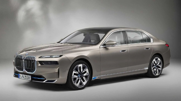 第四款,2023款寶馬i7。2023款寶馬i7于2022年12月上市。新車共推出2款不同配置可供選擇,售價(jià)皆為145.9萬元。新車的外觀與內(nèi)飾同燃油版車型保持一致,只在細(xì)節(jié)方面進(jìn)行了調(diào)整。內(nèi)飾部分,一體式懸浮雙聯(lián)屏搭配平底式多功能方向盤,遵循寶馬稱之為“Shy Tech”的隱形科技原則,全車減少了大量的物理按鍵,橫向視覺語言構(gòu)成的中控臺(tái)相比前代車型簡(jiǎn)化了許多。動(dòng)力系統(tǒng)方面,新車搭載了前后雙電機(jī)系統(tǒng),綜合最大功率400KW,CLTC工況續(xù)航里程為650公里。