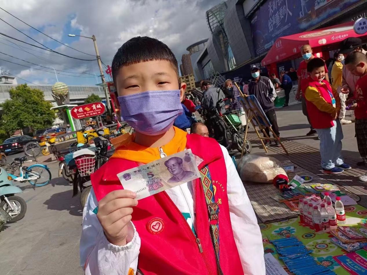 在幫助弱勢群體的愛心義賣中,為了能籌集更多的善款,幫助更多有需要的人,靦腆的耿萬城主動向陌生人宣傳義賣的意義和義賣的商品。帶隊的成年志愿者說,義賣籌款是對弱勢群體的幫助,也是對同學(xué)們表達(dá)能力和溝通能力的鍛煉,更是在孩子們的內(nèi)心深處播種了愛的種子,也是對同學(xué)們最好的社會實踐和素質(zhì)教育。