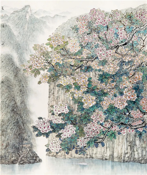 蔣才 瞿塘峽口滿山花 240cm×200cm 國(guó)畫(huà)