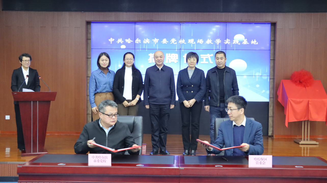 黑龍江經(jīng)濟(jì)網(wǎng)訊(記者商祺)12月13日,哈爾濱綜合保稅區(qū)與哈爾濱市委黨校舉行現(xiàn)場教學(xué)實踐基地揭牌儀式,哈爾濱市政府副秘書長、兩區(qū)一體化辦公室主任、哈爾濱綜合保稅區(qū)管理委員會主任尹承云與中共哈爾濱市委黨校常務(wù)副校長、市行政學(xué)院院長孫蕊共同為現(xiàn)場教學(xué)實踐基地揭牌。哈爾濱市委黨校副校長孫昭與哈爾濱綜合保稅區(qū)管理委員會常務(wù)副主任邸凱代表雙方簽署合作協(xié)議。