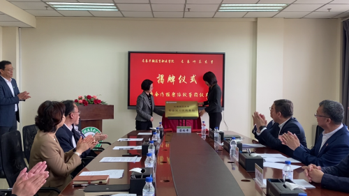 長(zhǎng)春師范大學(xué)教育學(xué)院院長(zhǎng)孫中華、長(zhǎng)春早期教育職業(yè)學(xué)院副院長(zhǎng)劉韻鳳共同為“專(zhuān)業(yè)實(shí)習(xí)實(shí)訓(xùn)基地”揭牌。
