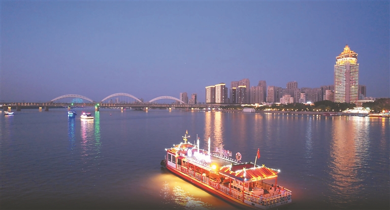 夜晚的松花江上,涼風(fēng)習(xí)習(xí)、碧波蕩漾,乘坐游船吹著江風(fēng)欣賞沿途迷人的風(fēng)光,成為哈爾濱市民及游客消暑納涼的佳選。1日,哈爾濱市舉辦“濱江夜韻·夜游松花江”主題活動,精心打造的8艘亮化夜游船只,巧妙融合了燈光藝術(shù)、音樂、文化表演等元素,為市民和游客奉上獨(dú)具特色的夜游體驗(yàn)。